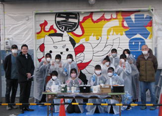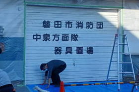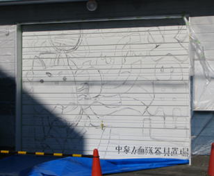 ![]() 全員で朝礼、進め方説明 シャッターへの下絵の書き方話し合い ![]() 下絵書き(しっぺい) 下絵書き(火の用心) ![]() 下絵書き全体 シャッターへの下絵書き完成 ![]() ペンキ準備 ペンキ塗り開始 ![]() シャッターアート終盤 アーティスト海斗さん、市長、西高生徒・先生 ![]() シャッターアアート完成 |